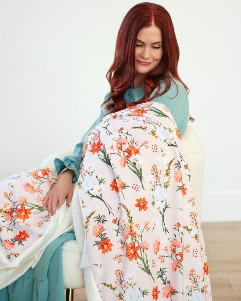 Dainty Floral Pink Wearable Minky Blanket