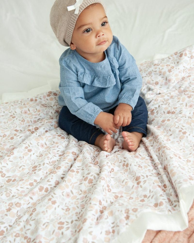 $3.75 – $35.850 out of 5Details:?This sweet design includes dainty flowers in soft pink and blue colors and neutral copper and beige tones.?This blanket is backed with a cream?plush minky fabric and bordered in a cream satin ribbon. Dimensions: Sizing is approximate and based on pre-sewn measurements. Mini: 10×18 0.5 lbs Infant: 30×36 1.4 lbs Tween:? 36×50 2.0 lbs Adult:?…