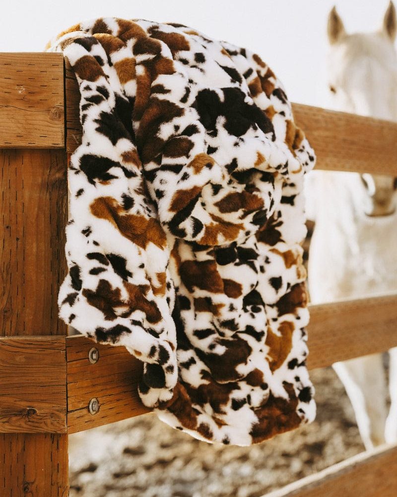 $19.35 – $52.350 out of 5Details: Experience ultimate comfort with the Hugs Brown Cow Blanket. a plush and stretchy design featuring a white background adorned with black and brown cow print. Perfect for cozy evenings. this soft and stylish blanket adds warmth and charm to any space. Dimensions:?Sizing is approximate and based on pre-sewn measurements. Infant: 30×36 1.6 lbs Travel:…