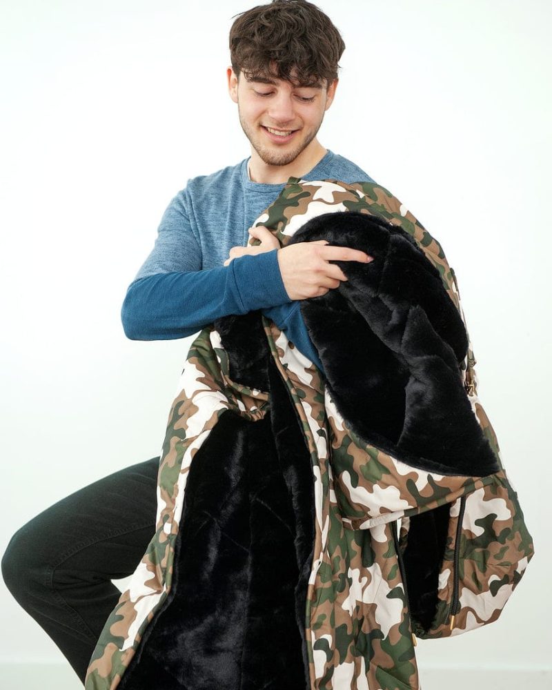 0 out of 5$299Original price was: $299.$89.70Current price is: $89.70.Outdoor blanket perfect for a picnic. watching sports games. camping and more! Outer lining is brown. tan. cream and green camouflaged patterned with a solid black plush fabric interior. Dimensions: Approximately 60×63 Water resistant quilted backing Plush minky lining Hood. Folds into a pocket when not in use. detachable via zipper. Hand-holds in two corners…