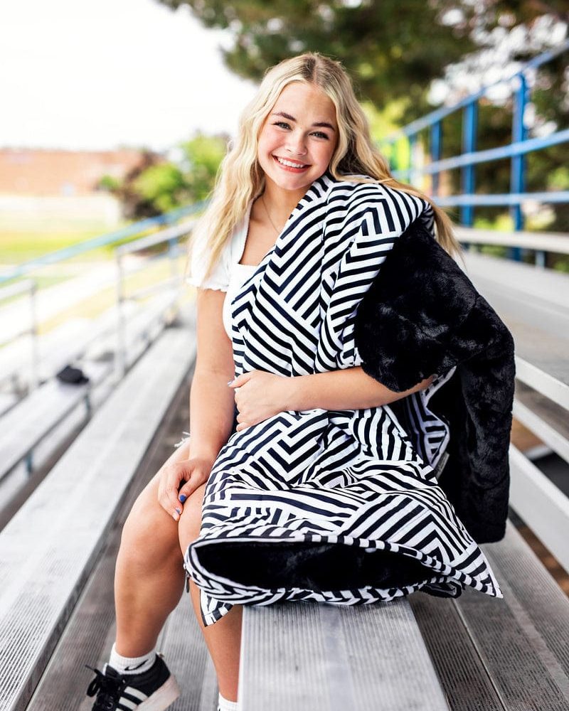 $22.50 – $44.850 out of 5Outdoor blanket perfect for a picnic. watching sports games. camping and more! Outer lining is solid neon yellow with a black and white checkered plush fabric interior. Dimensions:?Sizing is approximate and based on pre-sewn measurements.? Kids 36×48 (Recommended for kids age 2-7)? Regular 60×63 Details: Water resistant quilted backing Plush minky lining Hood. Folds into…