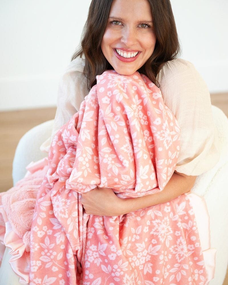$3.75 – $35.850 out of 5Details:?Wrap yourself in the charm of the Heather Wildflower Blanket. featuring delicate white flowers blooming across a rich purple background. This soft and cozy blanket brings a touch of elegance and warmth to any space. This blanket is backed in a heather plush minky with a cream?satin ruffle. ? Dimensions: Sizing is approximate and based…