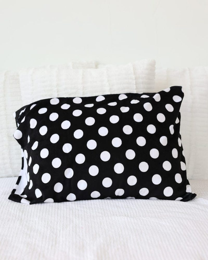 $3.75 – $35.850 out of 5Details:?This blanket includes white polka dots on a black background. This?blanket is backed in a red plush minky and sewn with a?golden yellow satin ruffle. Dimensions: Sizing is approximate and based on pre-sewn measurements. Mini: 10×18 0.5 lbs Infant: 30×36 1.4 lbs Tween:? 36×50 2.0 lbs Adult:? 50×60 3.4 lbs Monster:? 60×72 4.8 lbs Machine…