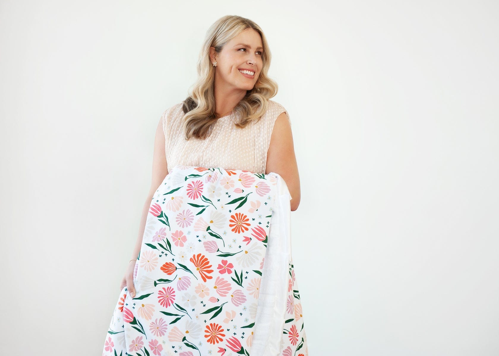 - Details: Introducing Baby Bloom. a tranquil blanket featuring a pristine white backdrop adorned with an array of vibrant flowers. Each delicate bloom brings a touch of whimsy and charm. creating a serene oasis for snuggling up at any time. Embrace the beauty of nature and the warmth of comfort with Baby Bloom. the perfect companion for cozy moments and relaxation. This blanket is backed in a white plush minky and sewn with a white satin ruffle.