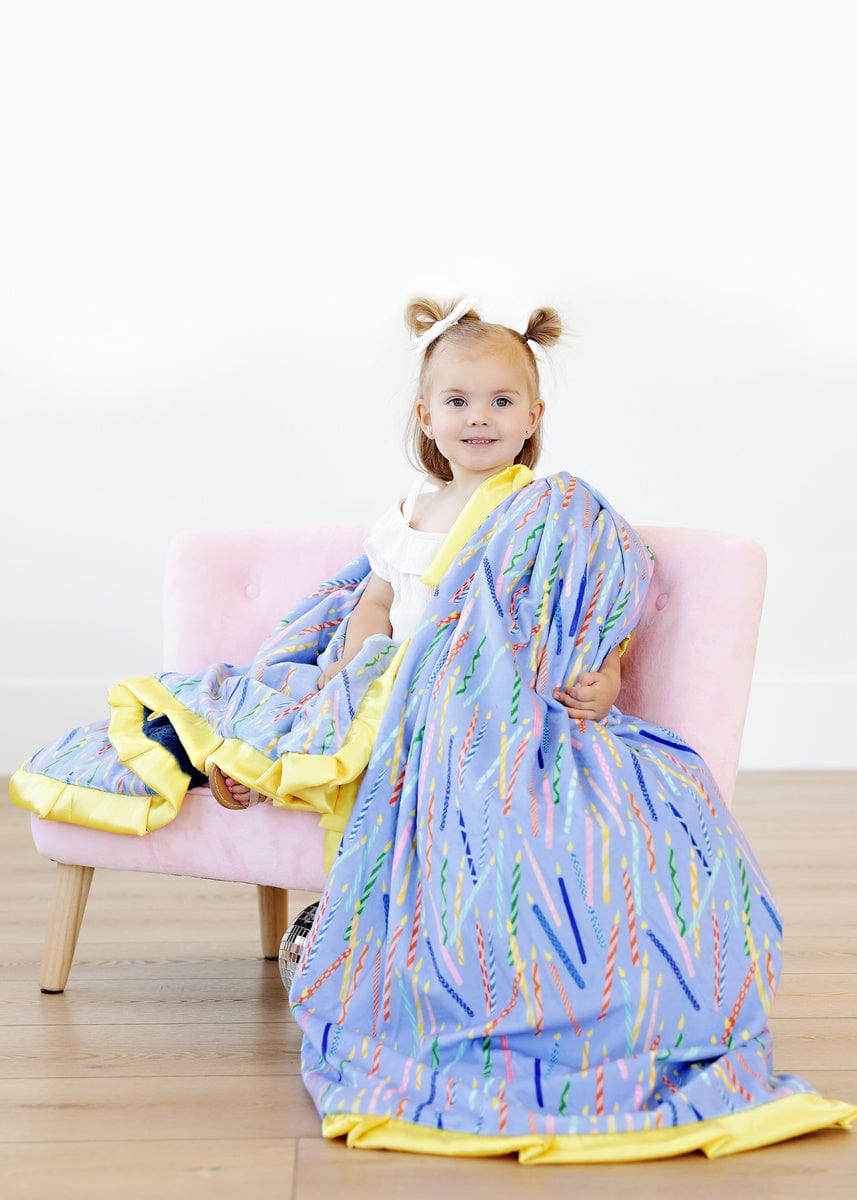 - Details: Brighten up your celebrations with the Birthday Wishes Blanket! Featuring a lively assortment of colorful candles with various patterns on a charming periwinkle background. Pair it with the matching pillowcase for a festive look that’s perfect for birthdays or any day you want to infuse with a bit of candle-lit cheer.