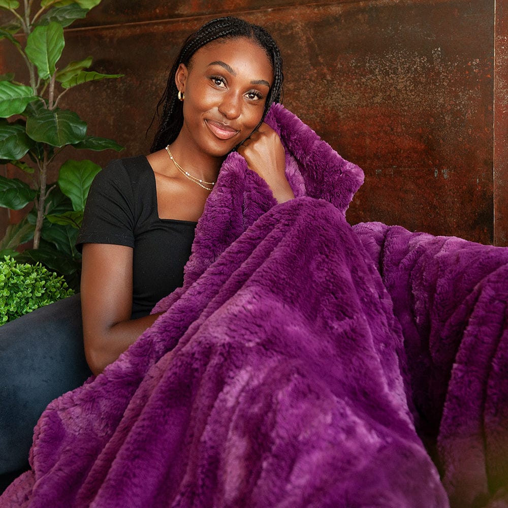 • Details: Indulge in the cozy luxury of the Feathers Grape Royal Blanket. This plush blanket features a rich purple hue. offering both warmth and elegance for a stylish and comfortable touch to your space.