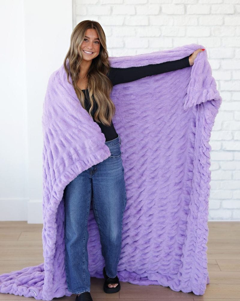 • Details: Wrap yourself in the cozy embrace of the Hugs Camp Green Blanket. This plush. stretchy blanket comes in a rich green hue. offering a luxuriously soft feel with just the right amount of flexibility. Perfect for relaxing at home or bringing along on your next adventure.