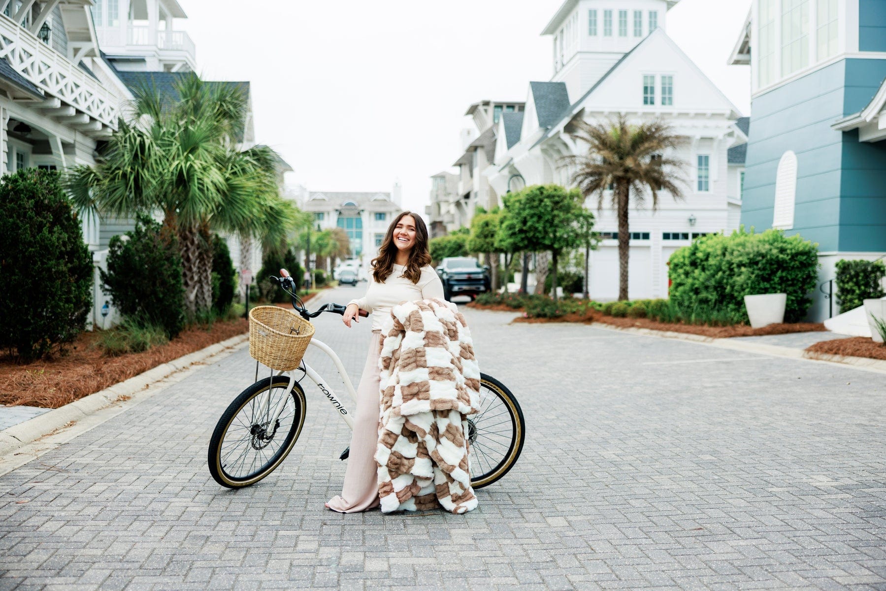 • Details: Cozy up with our Hugs Check Hunter Brown blanket. created in collaboration with influencer Devin Cordle. Featuring a charming checkered pattern of soft white and light brown squares. this plush. stretchy blanket captures Devin’s warm. down-to-earth aesthetic. With its versatile neutral tones and irresistible comfort. it’s the perfect piece to elevate your everyday lounging or add a cozy. curated touch to any space.