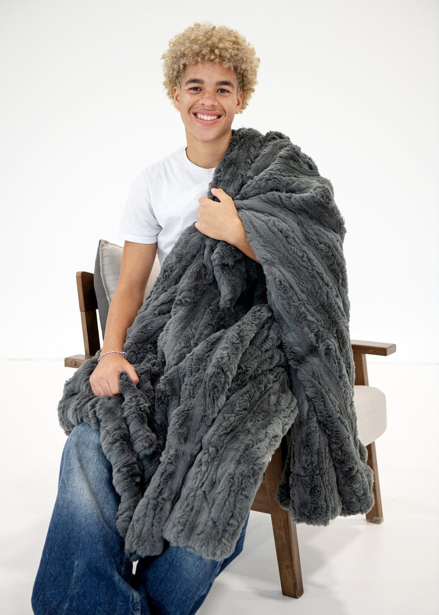 • Details: Wrap your employees and customers in comfort with this luxurious sculpted plush gray blanket. Made from thick. faux fur. it’s beautifully textured. fluffy. and irresistibly cozy??perfect for year-round warmth. A gift that keeps on giving. offering comfort and style in every use.