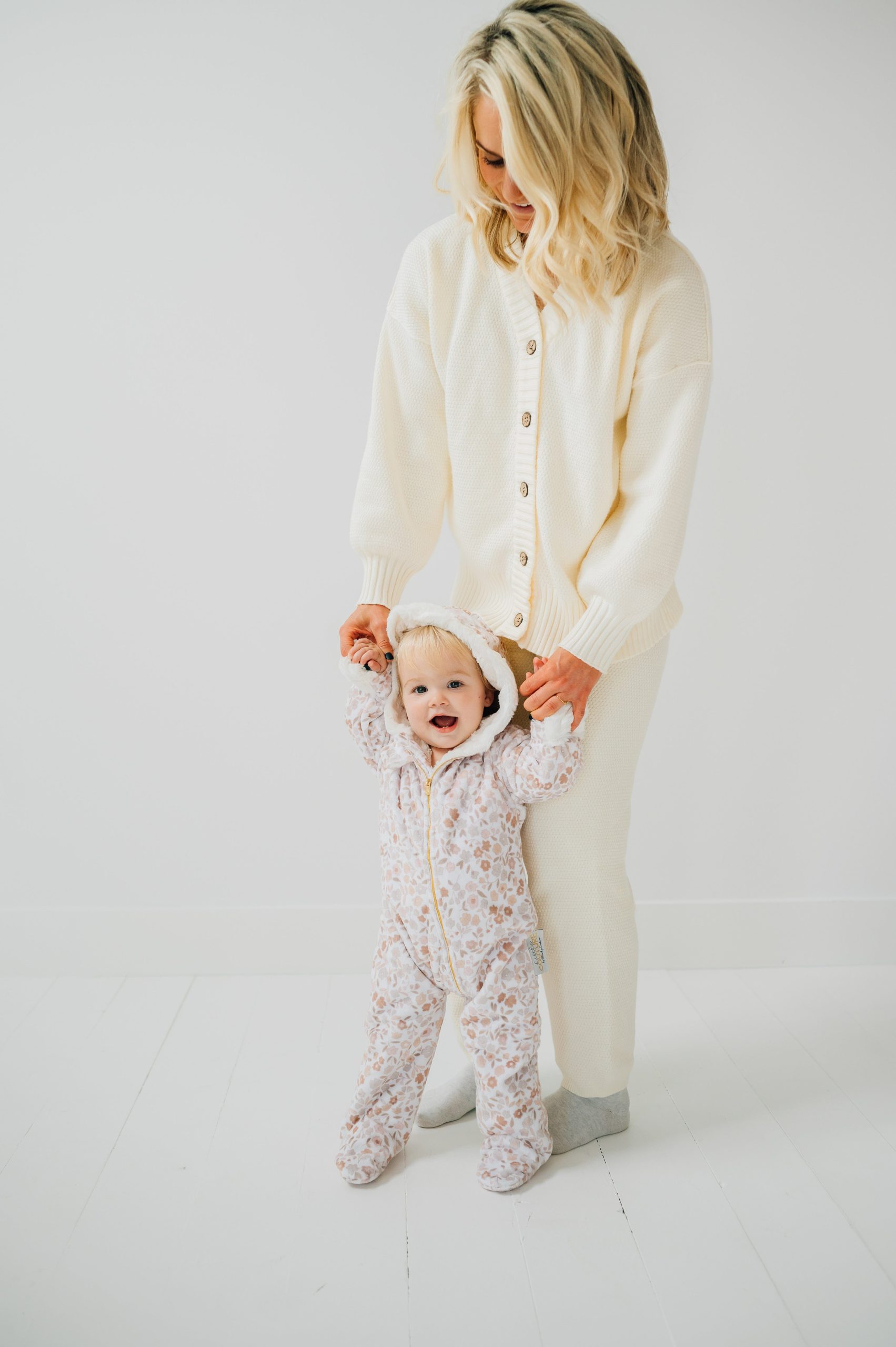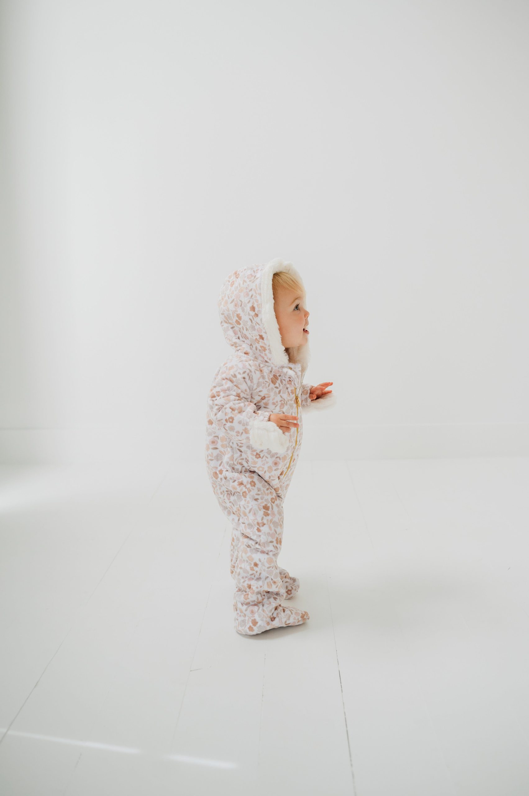 Our Winter Minky Jumpsuit was created to keep your precious little ones extra cozy while on their adventures in the cold weather. Including a Minky Couture polyester shell and plush lining. your babe will be bundled up. staying extra warm and cozy!